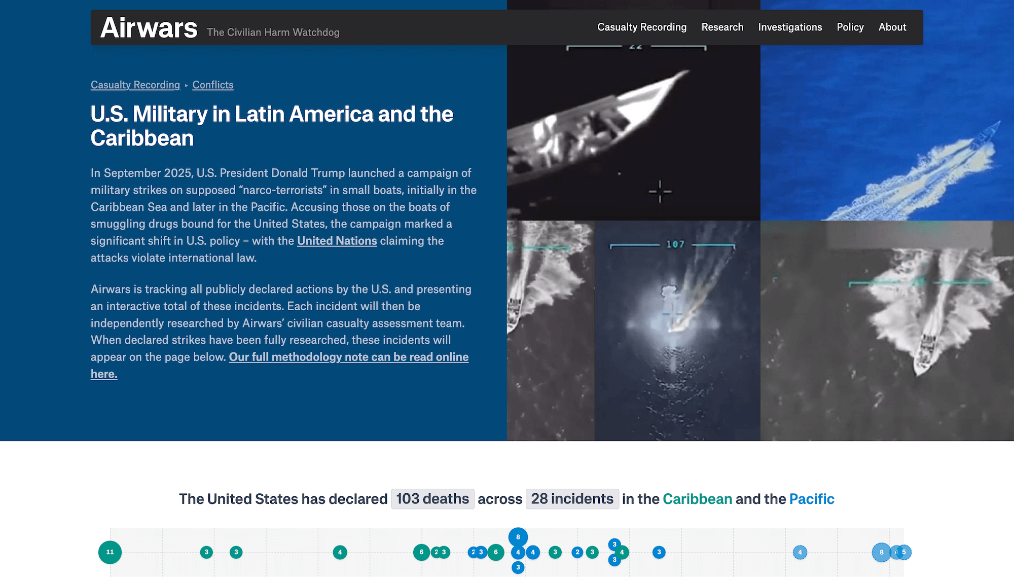 Within weeks of President Trump taking office, our specialist teams were documenting escalations in U.S. military actions in Yemen and Somalia. Later in 2025 we expanded our focus to U.S. military strikes on so-called “narco-terrorists” in the Caribbean and Pacific.
