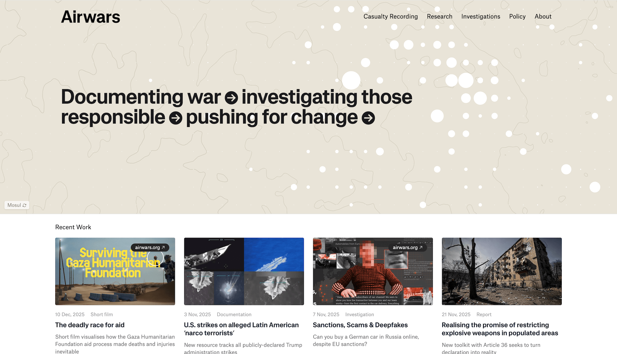 Airwars has always sat at the intersection of public interest journalism, human rights, legal accountability mechanisms, humanitarian action and international policy. Today, each of these fields are facing unprecedented existential challenges - in part due to scything global funding cuts, and in part as the traditional pathways for accountability and justice are not up to task for those who need them most.